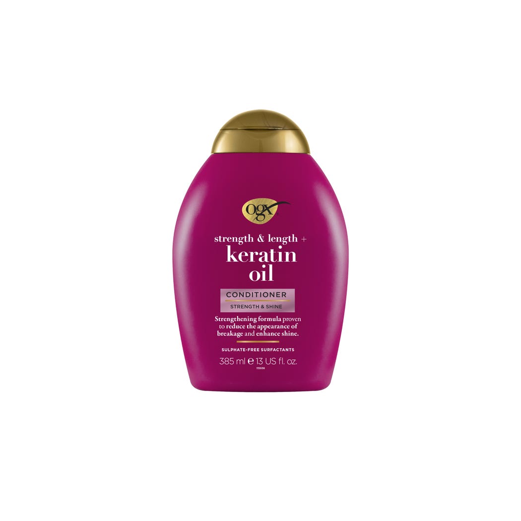 بعد غسل الشعر بشامبو Ogx Anti-Breakage Keratin Oil، وزعي كمية مناسبة من البلسم على الشعر المبلل من الجذور حتى الأطراف. اتركيه من 3 إلى 5 دقائق، ثم اشطفيه جيدًا بالماء.