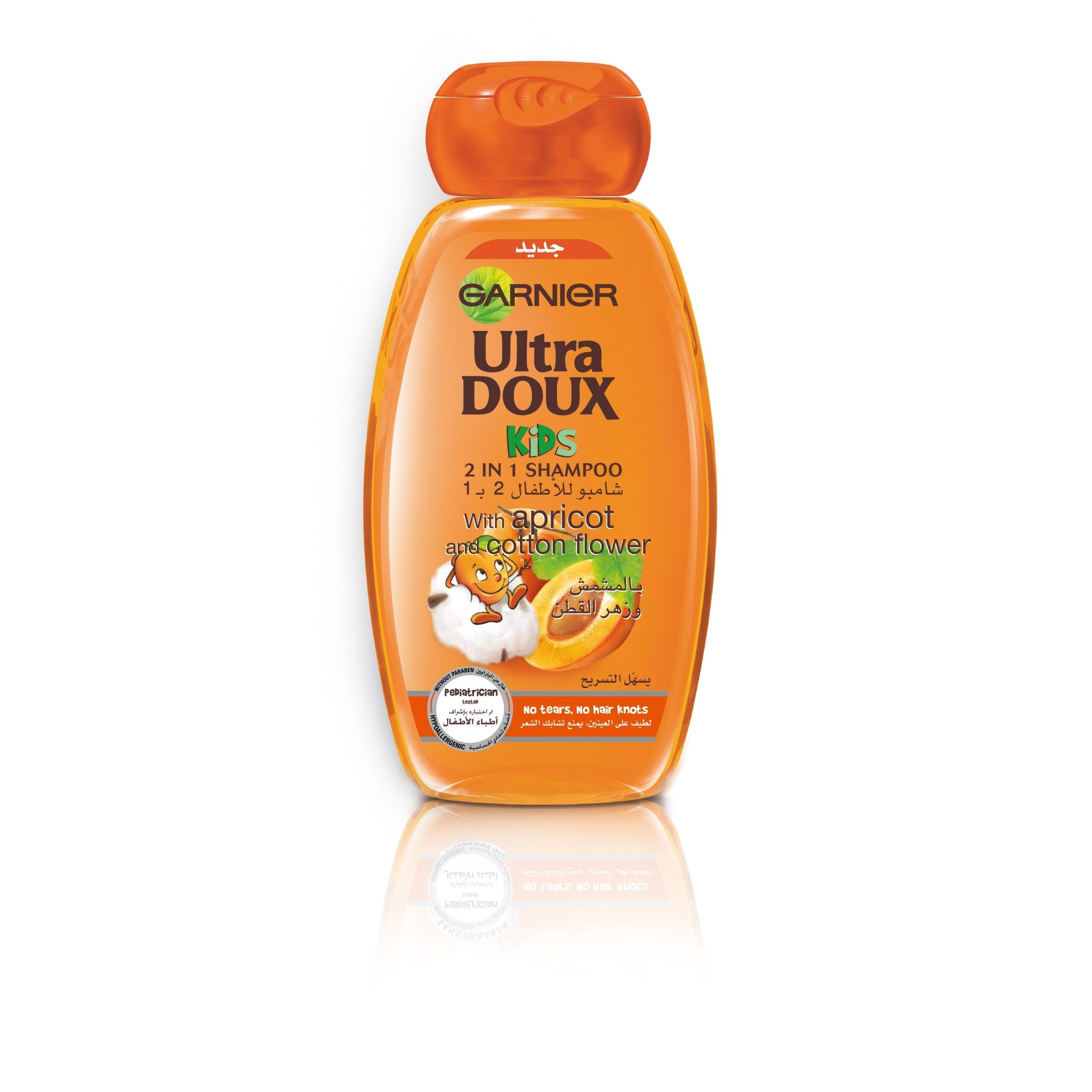 يحتوي على مستخلصات من المشمش وزهرة القطن ، الموجودات بالمنتج خصيصا لشعر الاطفال الرقيق