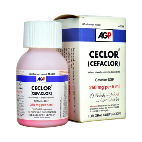 - Cefaclor 250mg/5ml – مضاد حيوي فعال ضد العديد من البكتيريا المسببة للالتهابات في الجهاز التنفسي، الأذن، الجلد والمسالك البولية.