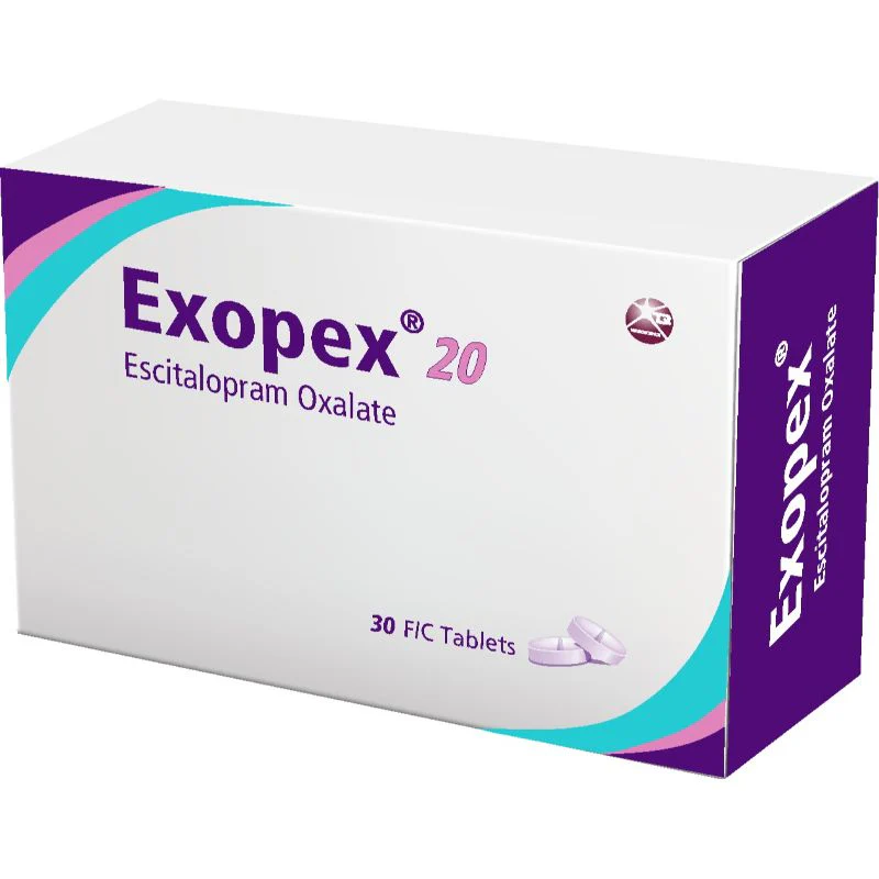 Exopex 20mg 30 ODT Tablets هو دواء يحتوي على Escitalopram، وهو من مثبطات امتصاص السيروتونين الانتقائية (SSRIs) التي تُستخدم لعلاج الاكتئاب واضطرابات القلق. يعمل الدواء على زيادة مستويات السيروتونين في الدماغ، مما يُحسن المزاج ويقلل من التوتر والقلق. يأتي على شكل أقراص ذوبان فموية (ODT)، مما يجعله خيارًا مناسبًا للأشخاص الذين يعانون من صعوبة في البلع.