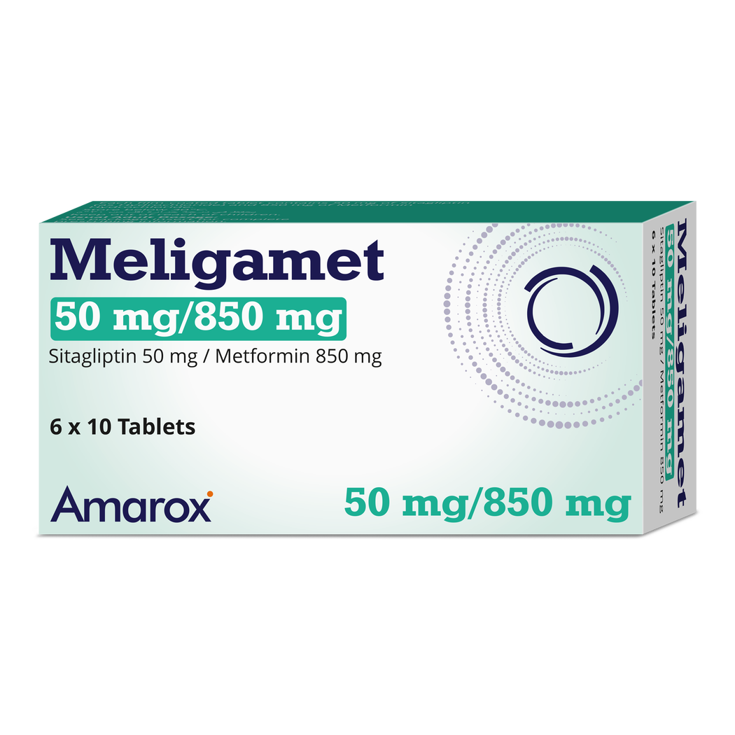Meligamet 50/850mg 60 Tablets هو دواء مضاد لمرض السكري من النوع الثاني يحتوي على مزيج من Sitagliptin و Metformin. يعمل هذا المزيج الفعال على خفض مستويات السكر في الدم من خلال آليتين: حيث يساعد Sitagliptin على زيادة إفراز الأنسولين بعد الوجبات وتقليل إفراز الجلوكوز من الكبد، بينما يعمل Metformin على تحسين حساسية الخلايا للأنسولين وتقليل امتصاص الجلوكوز من الأمعاء. عند دمجه مع نظام غذائي صحي وممارسة الرياضة بانتظام، يمنح Meligamet تحكمًا أفضل في مستويات السكر.