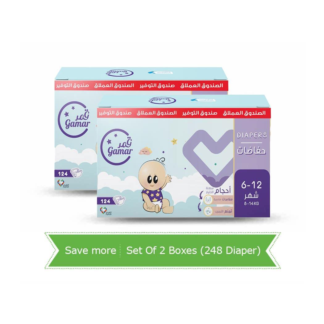 فوط الأطفال Gamar Diapers 6-12 Months 8-14 kg, Size (4) – Double Box (248 Diapers)