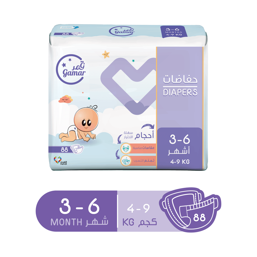 فوط الأطفال Gamar Diapers Size (3) – Mega Pack 88 Diapers