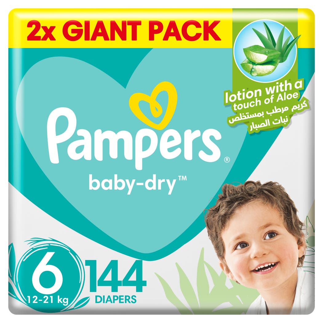 فوط الأطفال Pampers Baby-Dry Diapers with Aloe Vera Lotion, Size 6, 16-21 kg, 144 Diapers