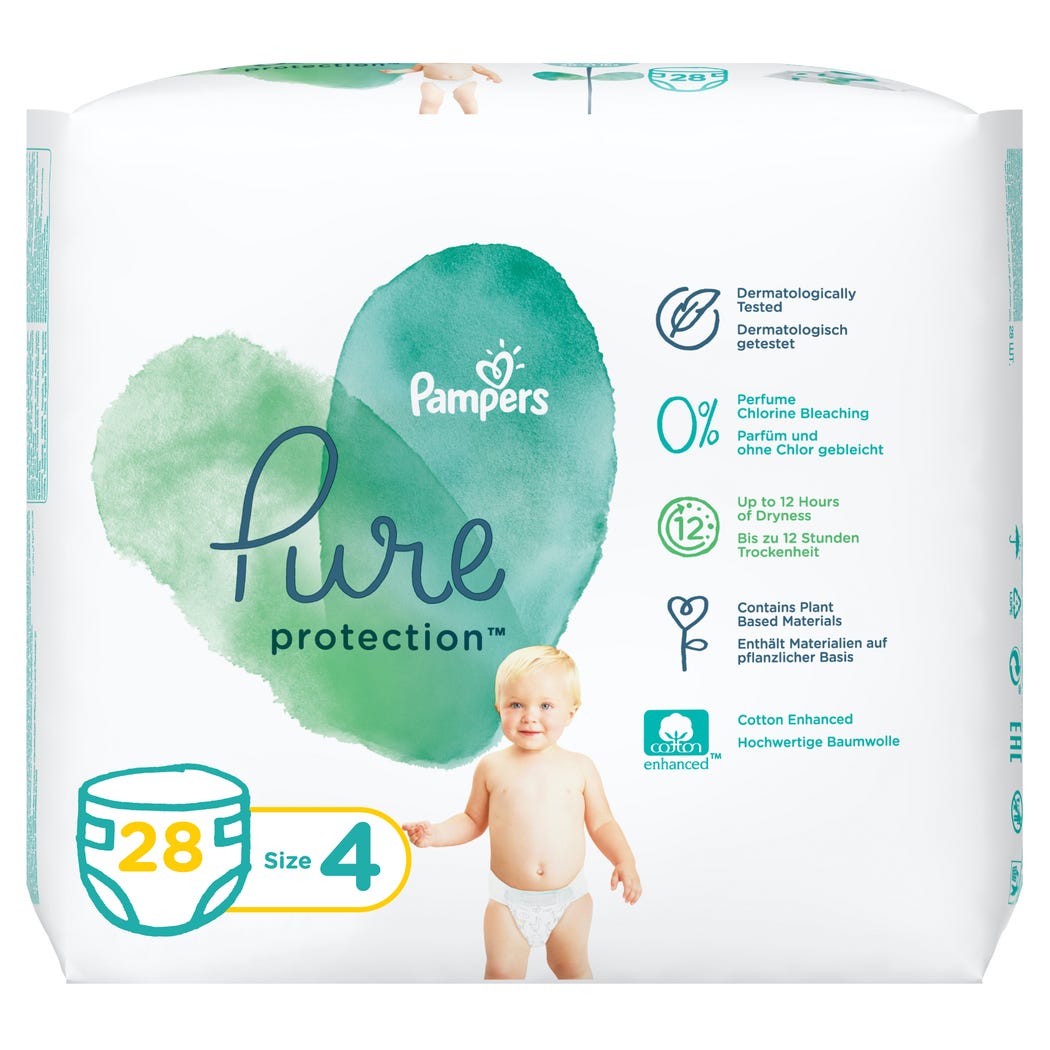 فوط الأطفال Pampers Pure Protection Diapers, Size 4, 9-14kg, 28 Diaper Count