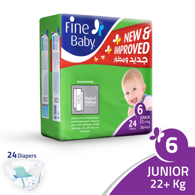 فوط الاطفال Fine Baby Diapers, Size 6, 22+ Kg, Double Pack, 24Count