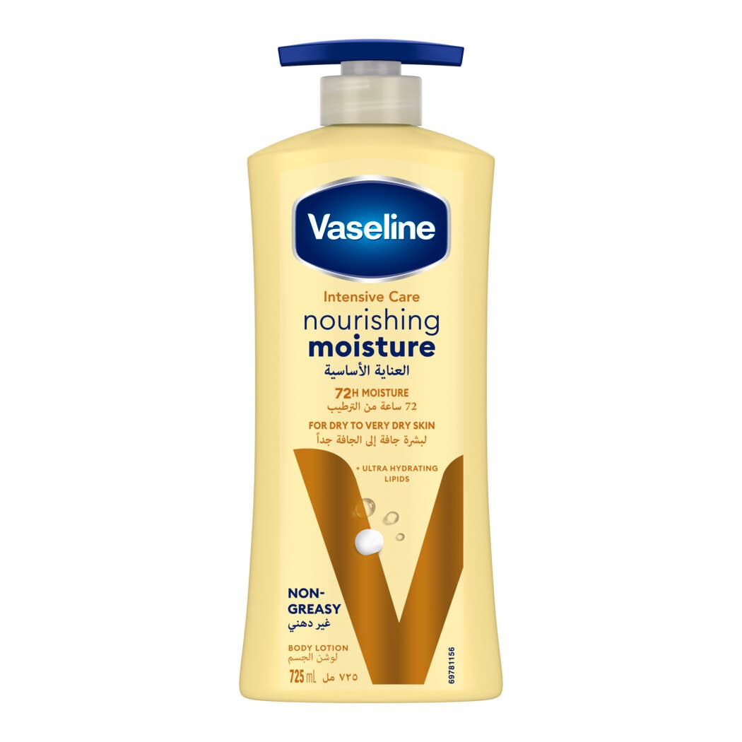 لوشن الجسم Vaseline Essential Healing بحجم 725 مل يوفر ترطيبًا عميقًا ونعومة تدوم طويلاً من أجل عناية يومية مثالية بالبشرة الجافة. تركيبته الغنية بقطرات الفازلين الجلي وGlycerin تعمل على حبس الترطيب داخل الجلد، وبالتالي تساعد على إصلاح البشرة الجافة والمتشققة. بالإضافة إلى ذلك، يحتوي على Oat Extract المعروف بخصائصه المهدئة، مما يمنح بشرتك راحة وإشراقة طبيعية. علاوة على ذلك، يتميز بقوامه الخفيف سريع الامتصاص الذي لا يترك أي بقايا دهنية، لذلك يعد خيارًا مناسبًا للاستعمال اليومي.
