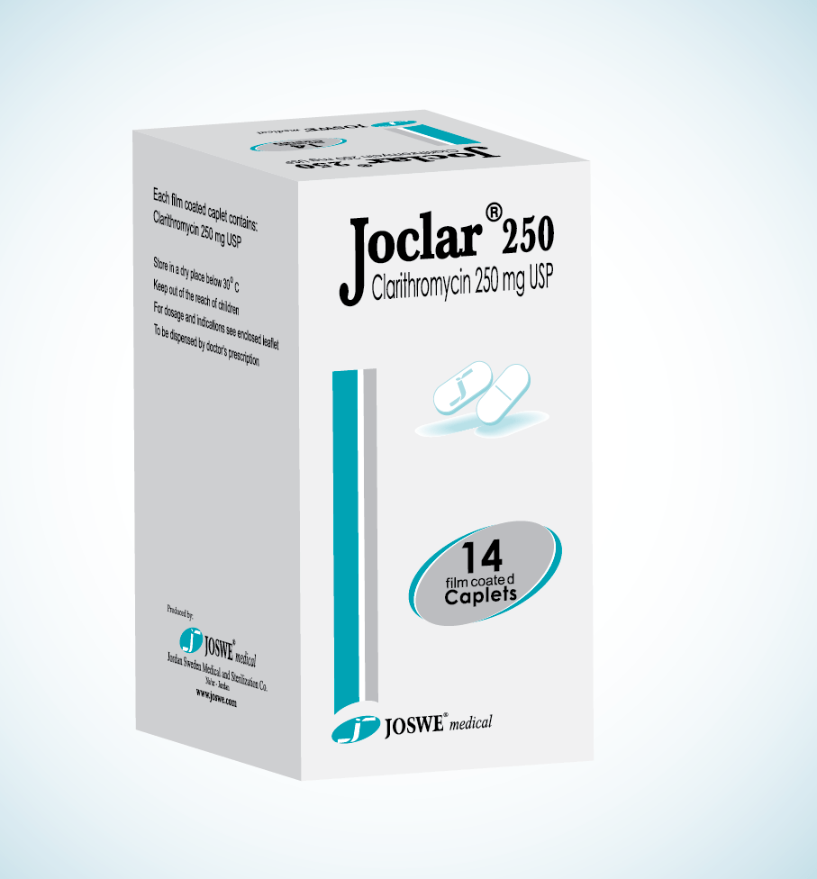 Joclar 250mg 14 Tablets هو مضاد حيوي من مجموعة الماكروليد يحتوي على مادة Clarithromycin، ويستخدم لعلاج مجموعة واسعة من الالتهابات البكتيرية التي تصيب الجهاز التنفسي، الجلد، والبلعوم. كما يدخل في البروتوكولات العلاجية للقضاء على جرثومة المعدة، ويتميز بفعاليته في مقاومة البكتيريا وتحسين الأعراض خلال فترة قصيرة.