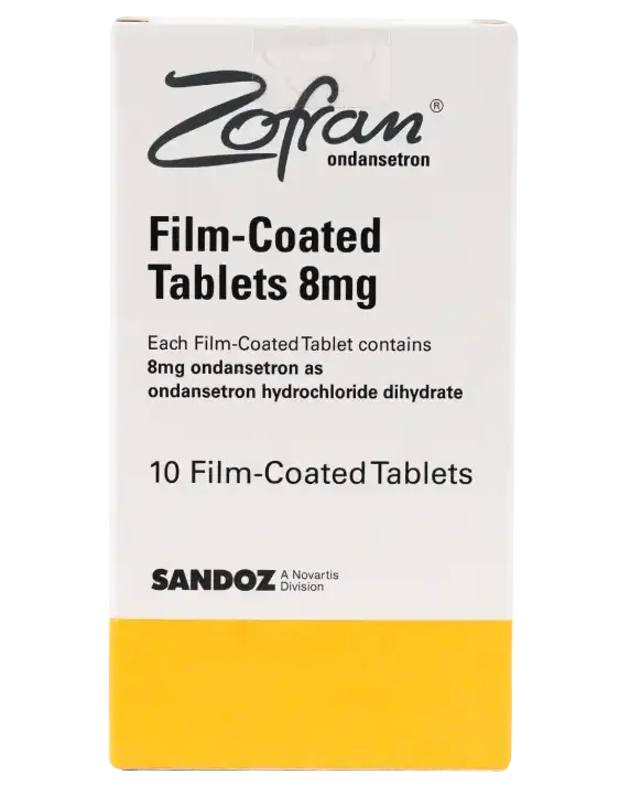 Zofran 8mg هو دواء يحتوي على Ondansetron، ويستخدم لمنع الغثيان والقيء الناتج عن العلاج الكيميائي، العلاج الإشعاعي، أو العمليات الجراحية. يعمل من خلال تثبيط مستقبلات السيروتونين (5-HT3) في الدماغ، مما يساعد في تقليل الشعور بالغثيان.