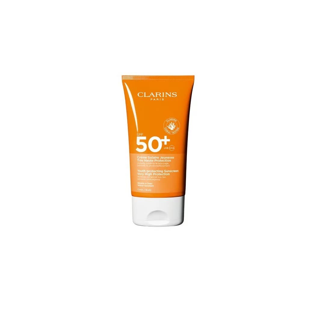 يقدم Clarins Sun Body Cream SPF50+ حماية شاملة وواسعة الطيف ضد أشعة UVA وUVB الضارة. بالإضافة إلى ذلك، يساعد الكريم على منع ظهور علامات الشيخوخة المبكرة مثل التجاعيد والبقع الداكنة الناتجة عن التعرض الطويل للشمس، مع الحفاظ على نعومة البشرة وإشراقها الطبيعي.