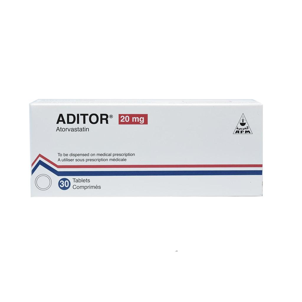 علاج ارتفاع الكوليسترول Aditor 20mg 30 Tablets
