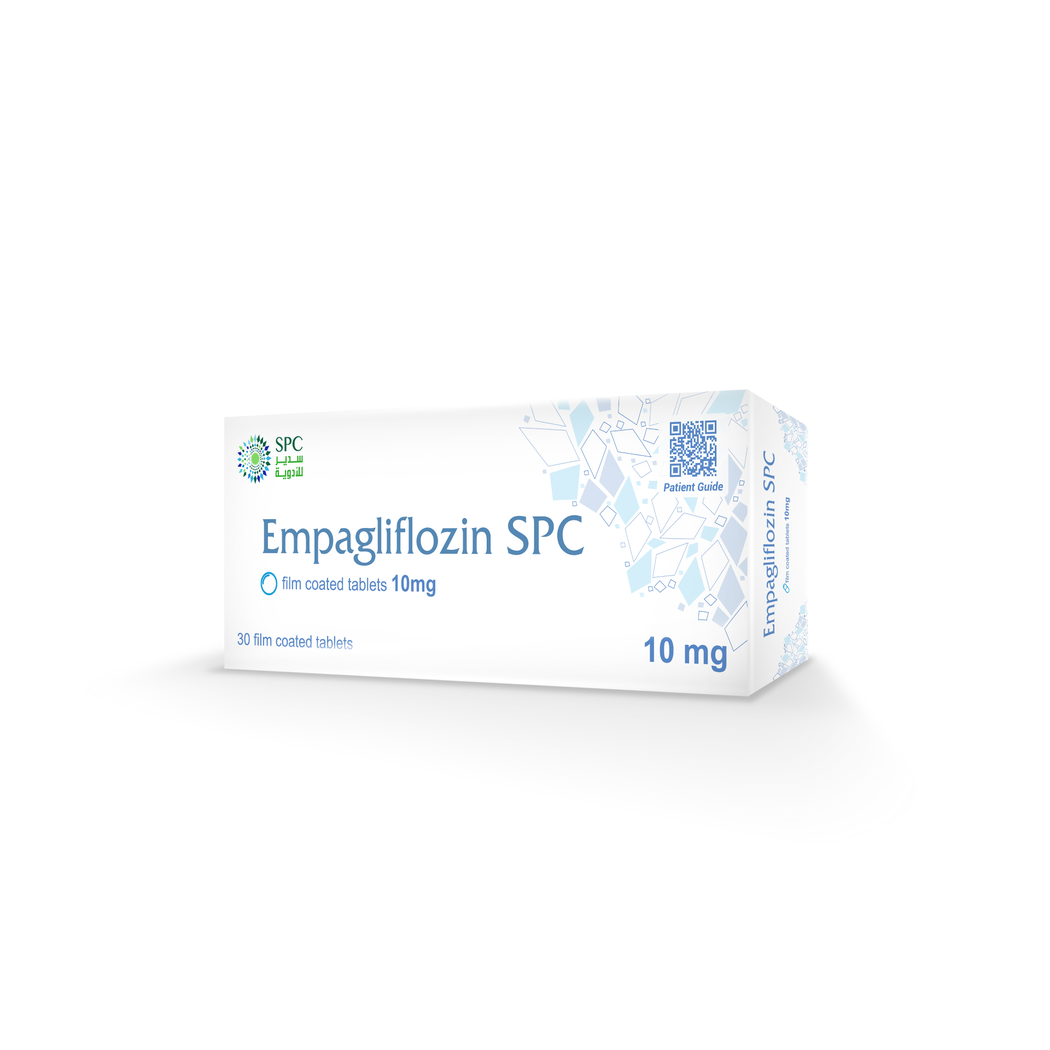 Empagliflozin SPC 10mg 30 Tablets هو دواء يحتوي على المادة الفعالة Empagliflozin من مجموعة مثبطات الناقل المشترك للصوديوم والجلوكوز-2 (SGLT2 inhibitors). يستخدم لعلاج داء السكري من النوع الثاني، حيث يساعد على خفض مستويات السكر في الدم من خلال تعزيز إخراج الجلوكوز عن طريق البول. بالإضافة إلى ذلك، يساهم في تقليل خطر الوفاة القلبية الوعائية والدخول إلى المستشفى بسبب فشل القلب لدى بعض البالغين المصابين بفشل القلب، كما يقلل من تطور أمراض الكلى المزمنة.