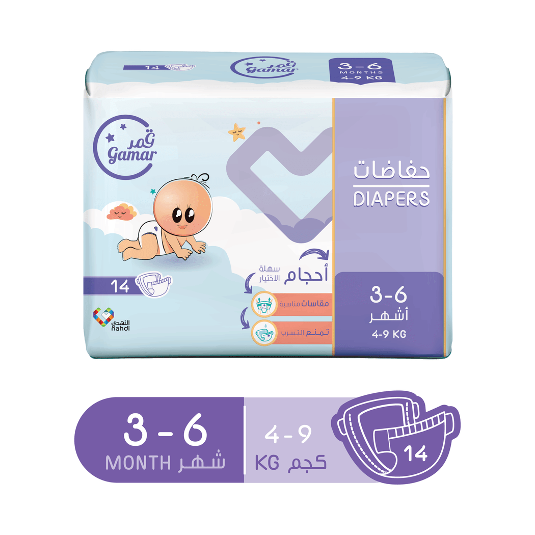 فوط الأطفال Gamar Diapers Size (3) – Carry Pack 14 Diapers
