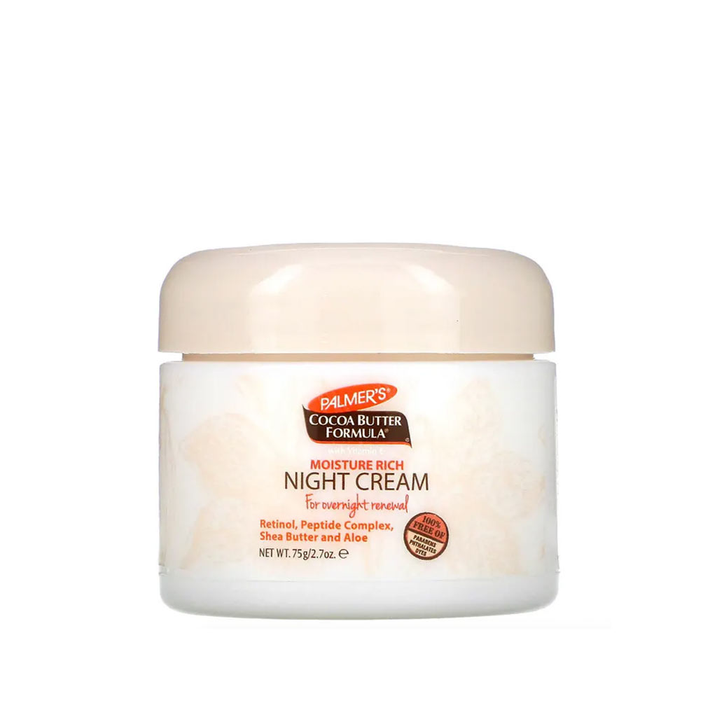 - ترطيب عميق: يوفر Palmers Moisture Rich Night Cream ترطيبًا مكثفًا للبشرة طوال الليل، وبذلك، يساعد في الحفاظ على نعومة البشرة ومرونتها.