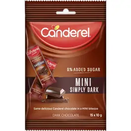 Canderel Chocolate Mini Dark 10*15 Gm 10 قطع مغلفة فردياً من الشوكولاتة البلجيكية الغنية الخالية من السكر المضاف للتحكم المثالي في السعرات الحرارية